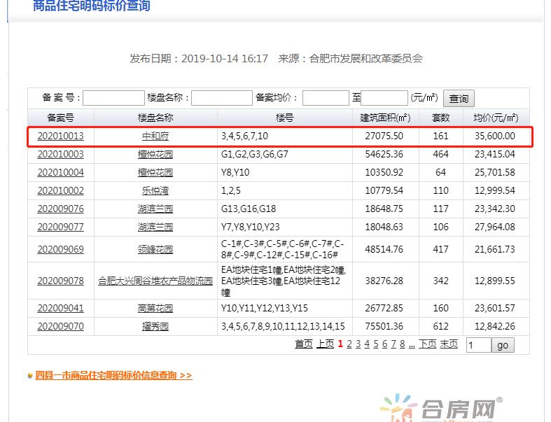 合肥發改委新增備案出爐!濱湖區葛洲壩中國府新備案161套房源 裝修多層均價35600元/㎡!