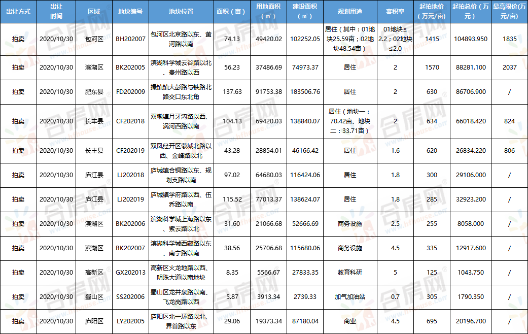 | “銀十”最大型土拍進入倒計時,據合房網內容中心不完全統計,10月30日,合肥暫定出讓地塊總計12宗地,總面積741.38畝。分區域來看,廬陽1宗,包河1宗,濱湖3宗,蜀山1宗,高新1宗,肥東縣1宗,廬江縣2宗,長豐縣2宗。