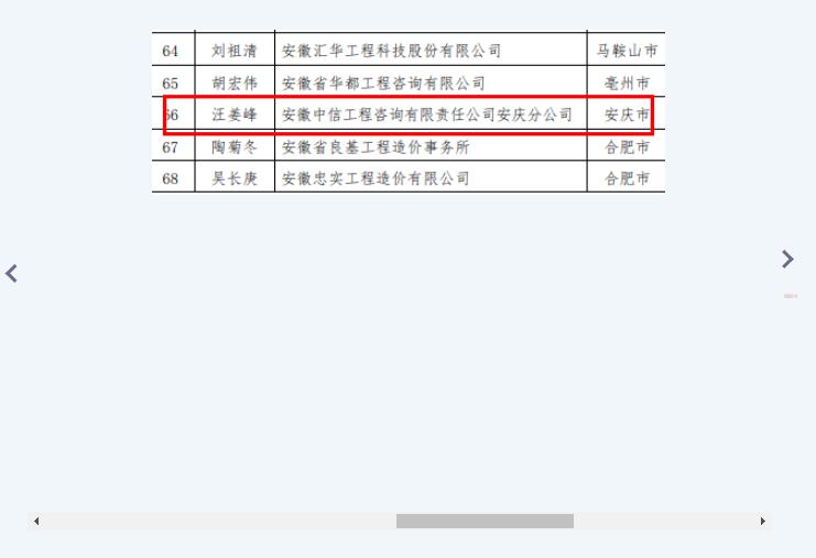 上述榮譽的獲得,既是對我公司工程造價咨詢管理體系和成果質量的肯定,也是對我們不斷進取的鞭策。下一步,中信顧問將再接再厲,在各項工作中,精益求精,追求卓越,不忘初心為廣大客戶提供更優質的服務,為行業發展增添我們的一份力量!同時也向榮獲安徽省工程造價咨詢行業優秀個人的員工表示祝賀,希望他再接再厲、再創新高。
