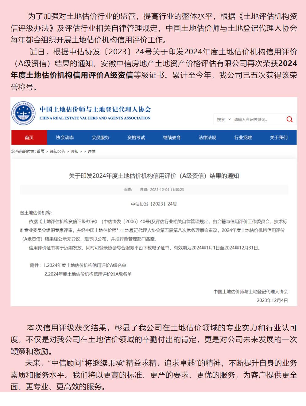 喜報丨我單位榮獲2024 年度土地估價機(jī)構(gòu)信用評價 A 級資質(zhì)榮譽(yù)稱號