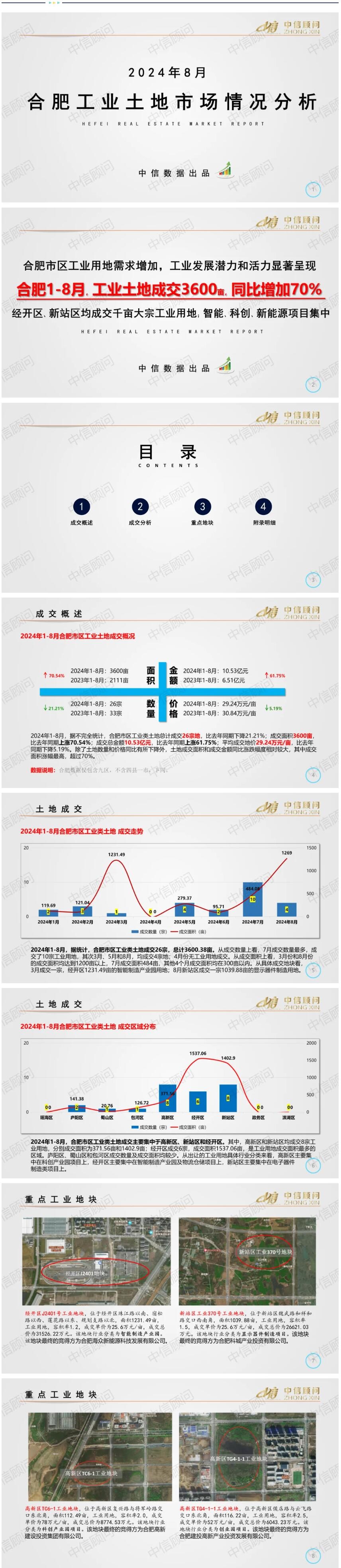 土地市場丨2024年1-8月,合肥工業用地成交3600畝,同比增加70%