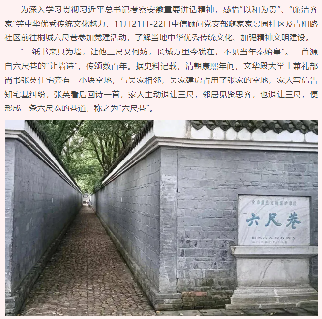中信顧問赴桐城六尺巷開展黨建活動