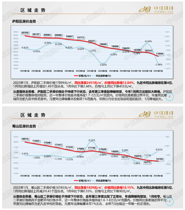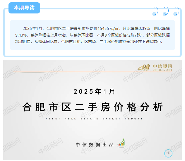 二手房市場 | 2025年1月,合肥住宅均價1.55萬元/㎡,環比下降0.39%,同比下降9.43%