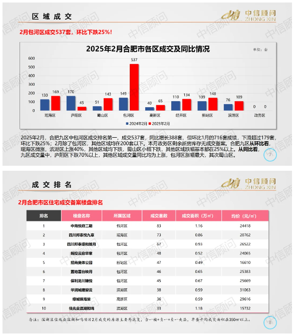 新房市場(chǎng) | 2025年2月,合肥新房成交量環(huán)比下跌25%,成交價(jià)格環(huán)比下跌2.5%