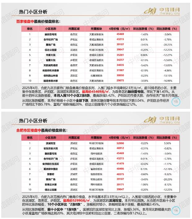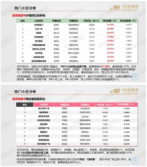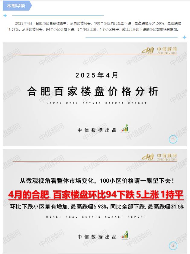 二手房市場 | 2025年4月,合肥百家樓盤環比94下跌5上漲1持平,環比下跌小區數量稍有增加