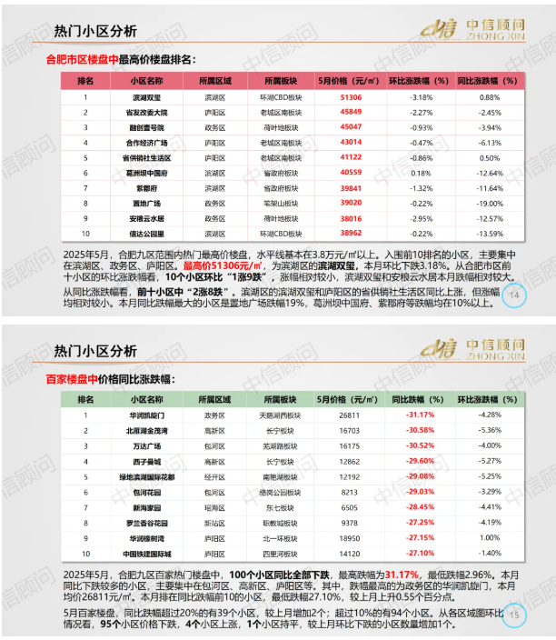 二手房市場 | 2025年5月,合肥百家樓盤環比95下跌4上漲1持平,環比下跌小區數量稍有增加