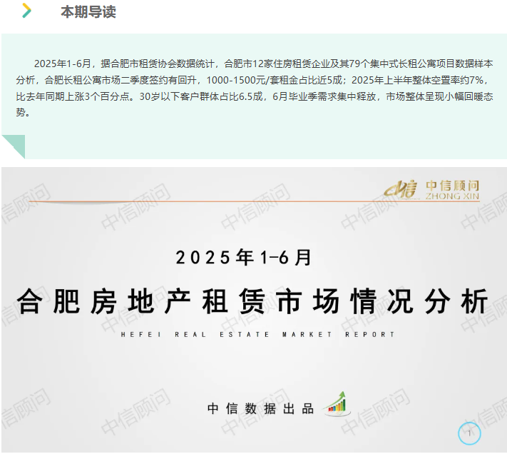 租賃市場 | 2025年1-6月,合肥長租公寓市場空置率約7%,比去年同期高出3個百分點
