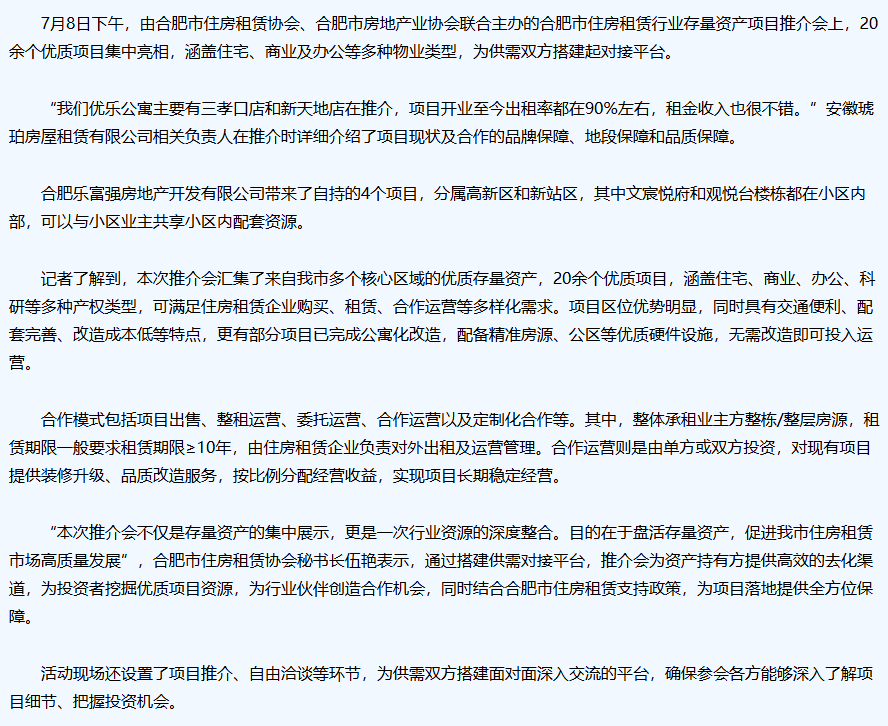 20余個優質項目集中亮相!合肥舉行住房租賃行業存量資產項目推介會