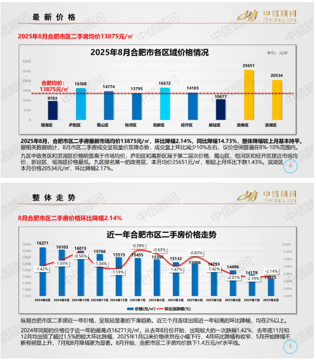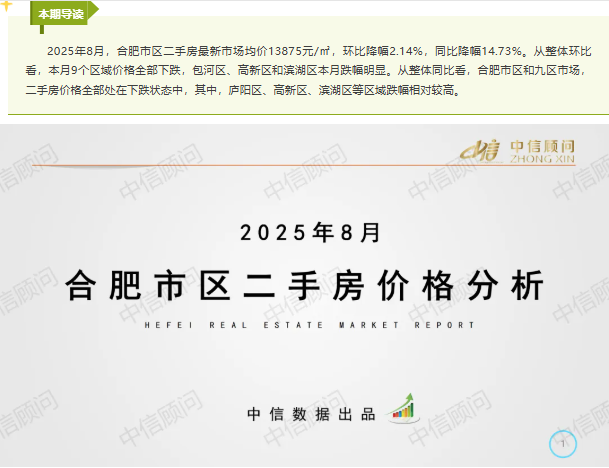 二手房市場 | 2025年8月,合肥住宅均價1.39萬元/㎡,環(huán)比下降2.14%,同比下降14.73%